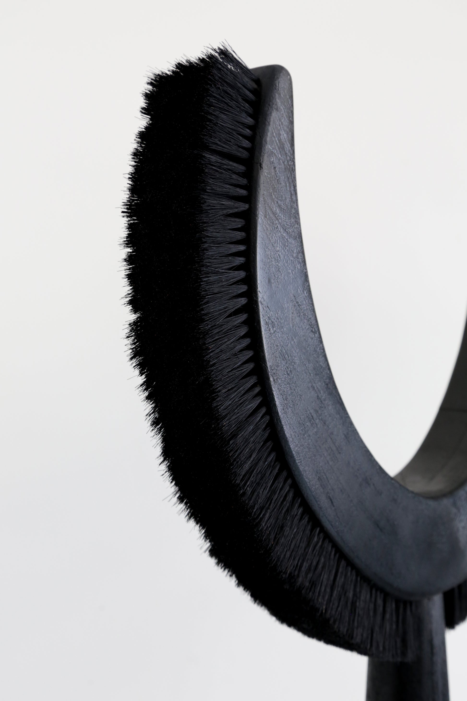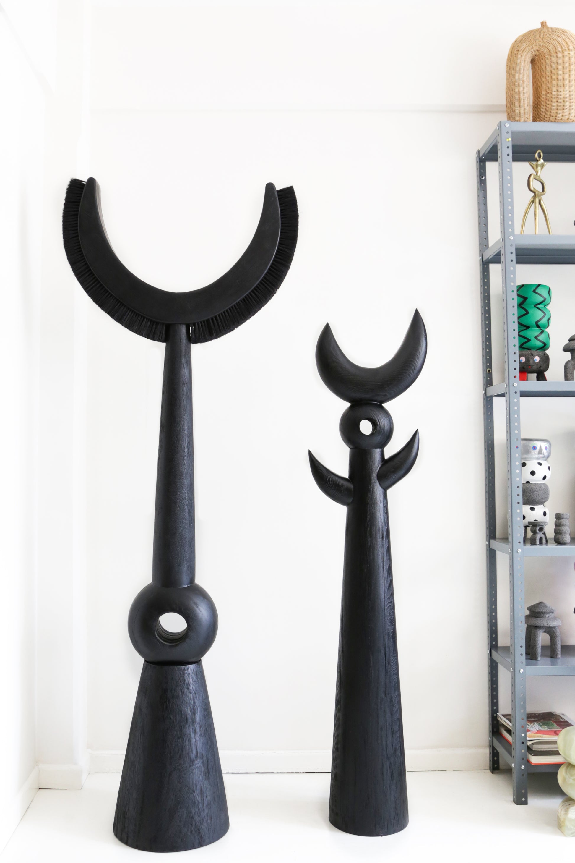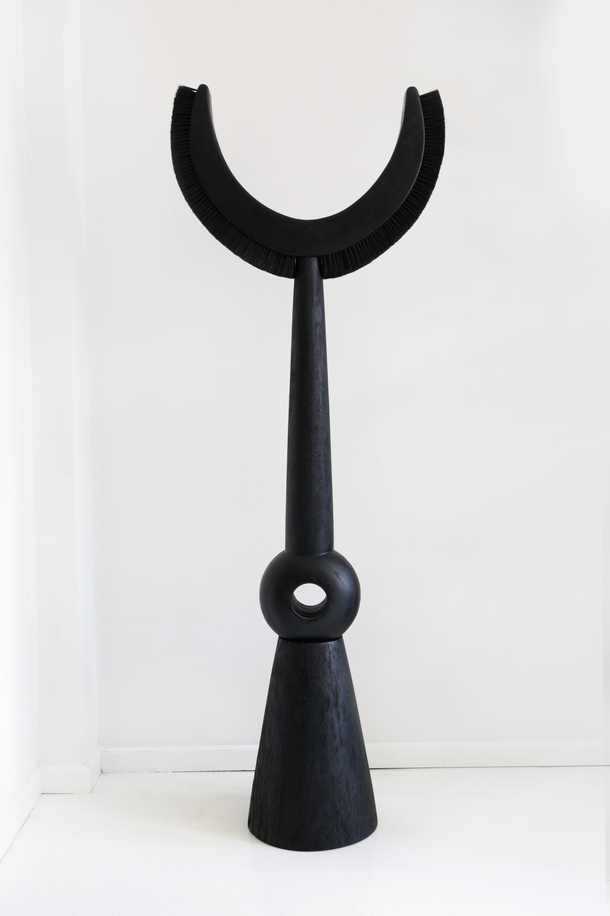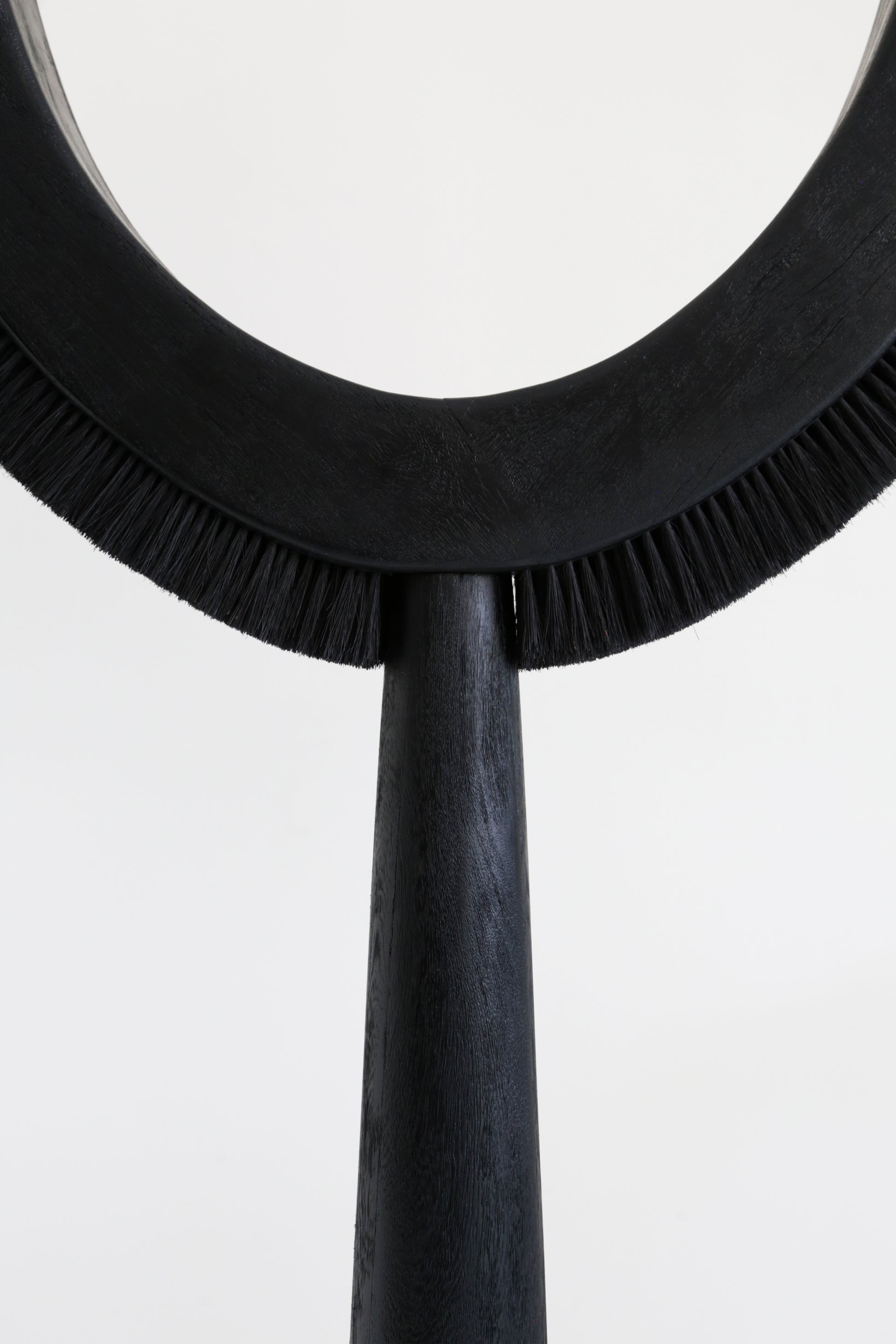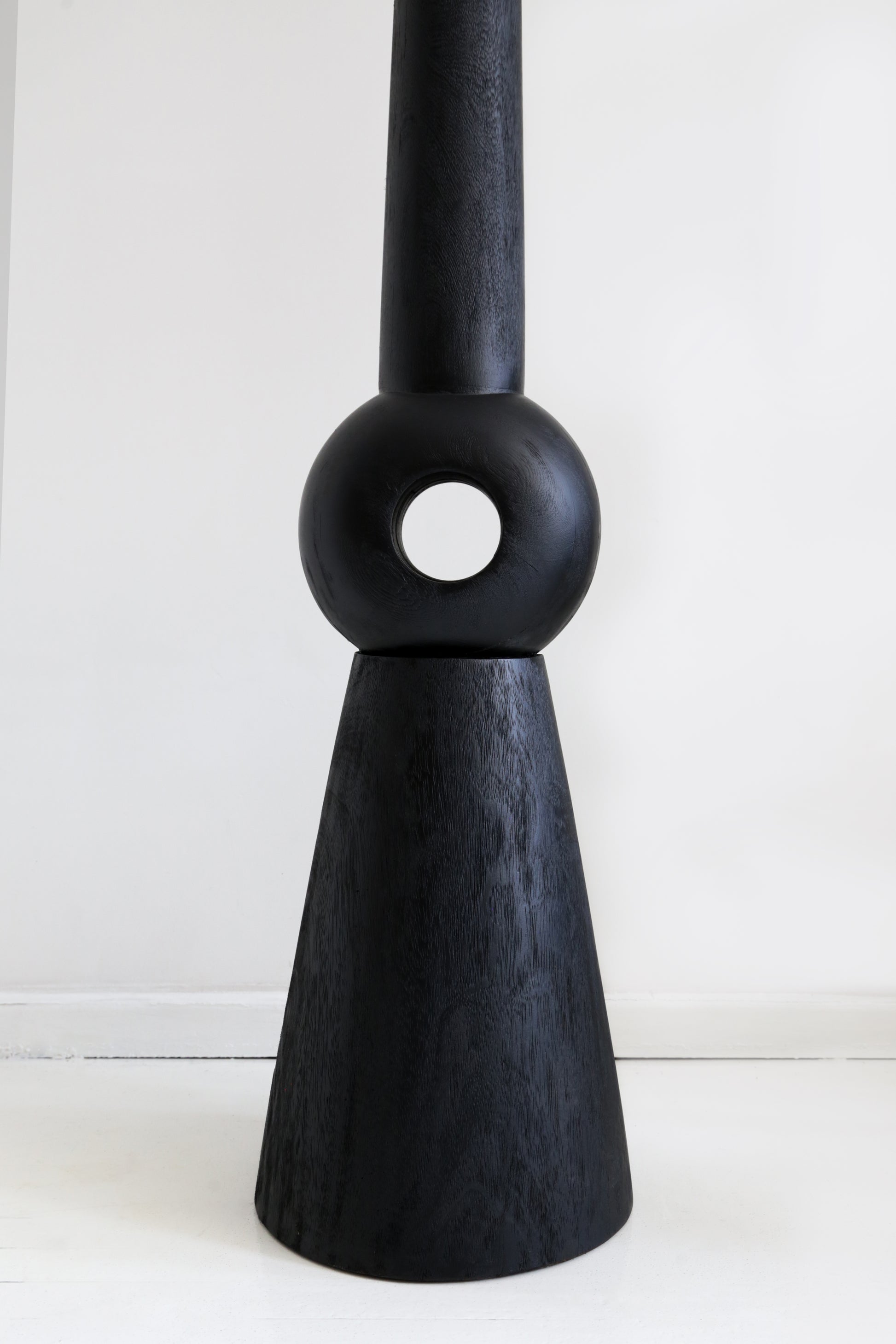 This piece is inspired by the bird Molothrus bonariensis, known as “dziú” in the Mayan language of the Yucatán Peninsula. Artefacto Dziu is part of a series of black sculptures featuring a burnt finish using the yakisugi method, designed by Lørdag & Søndag in Mexico City and crafted by master artisan César Zamorano of Torno Tonalá, in Tonalá, Jalisco.