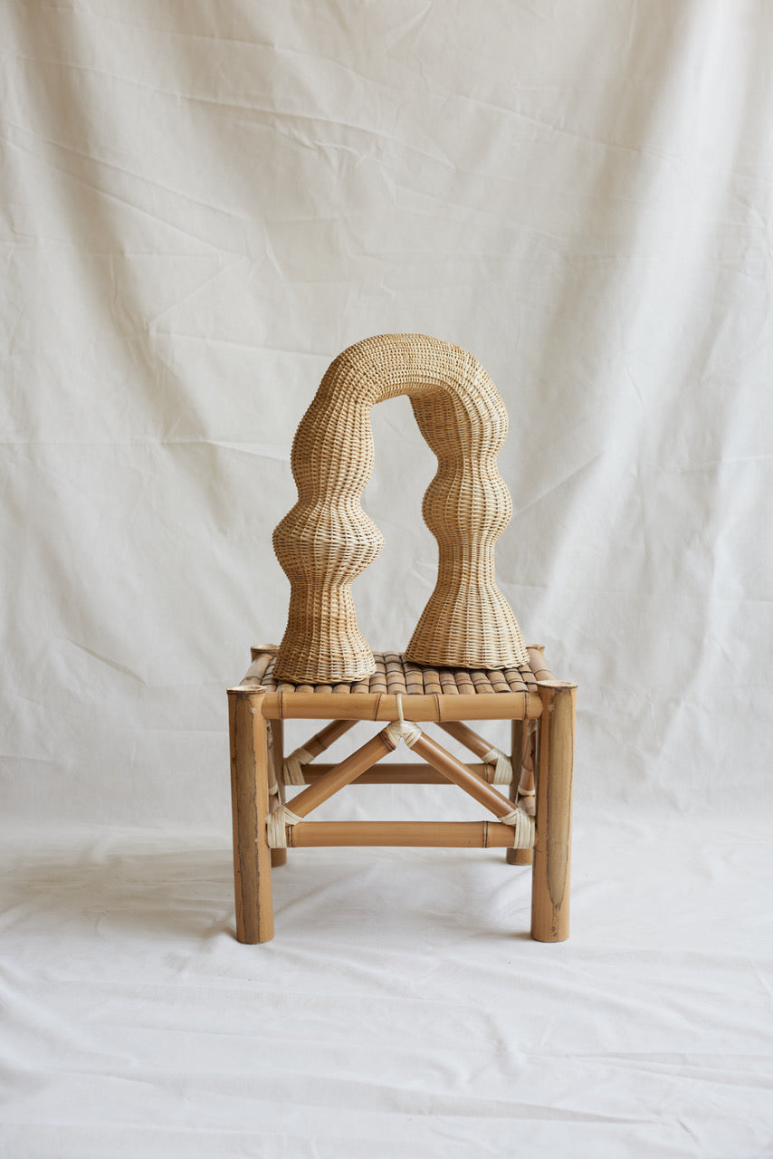 Este artefacto fue diseñado por Lørdag & Søndag en la Ciudad de México y tejido a mano por el maestro artesano Don Claudio en la Sierra Madre Oriental del estado de Oaxaca, México.Estas piezas son tejidas sin una estructura de metal interna utilizando una fibra llamada G’noo Xombé Nisin, en mazateco, idioma local de la región.