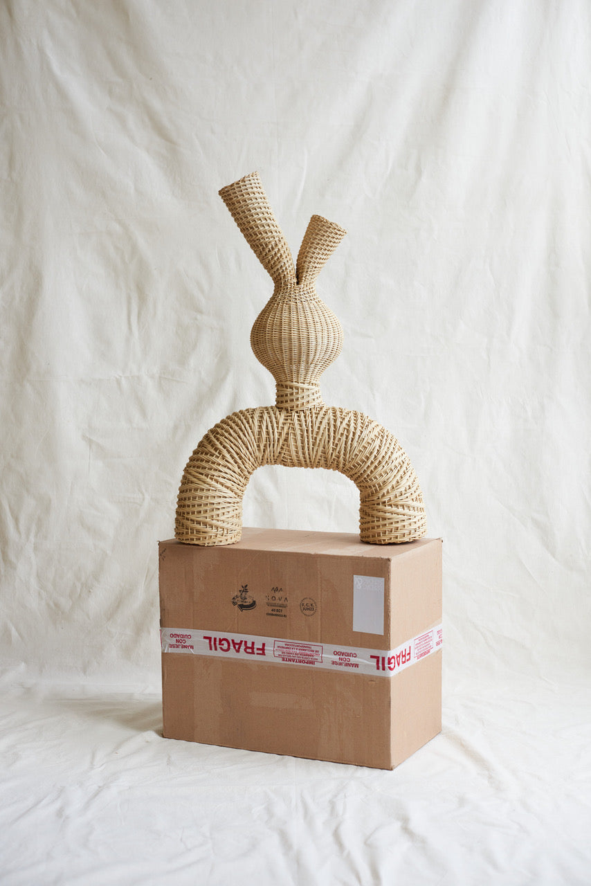 Height: 70 cm / 27.5 inchesEste artefacto fue diseñado por Lørdag & Søndag en la Ciudad de México y tejido a mano por el maestro artesano Don Claudio en la Sierra Madre Oriental del estado de Oaxaca, México.Estas piezas son tejidas sin una estructura de metal interna utilizando una fibra llamada G’noo Xombé Nisin, en mazateco, idioma local de la región.