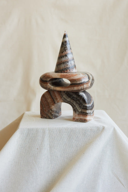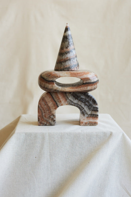 With the help of a hammer, chisel and grinder, every Artefacto is shaped by hand. These pieces may be replicated, however, due to the great variety of vein patterns, colors and textures of marble, and the fact that each piece is hand-made without using molds, the final results are completely unique to each piece.