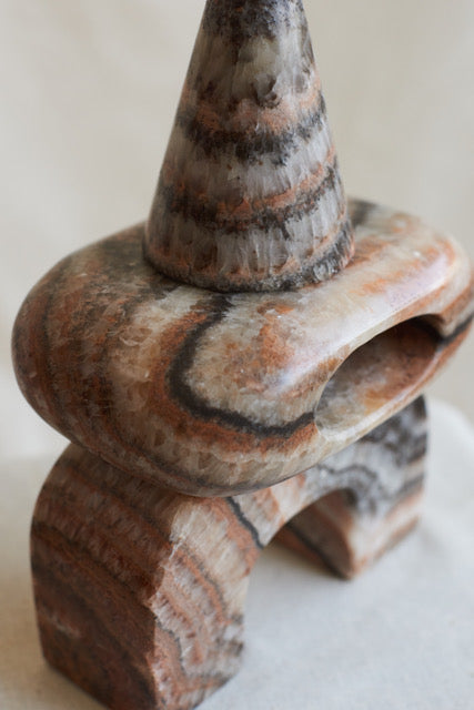 Con ayuda de un cincel, martillo y una esmeriladora, estos Artefactos son tallados a mano. Las piezas pueden ser replicadas, sin embargo, debido a la gran variedad de patrones de las vetas, colores y texturas del mármol, y al hecho de que cada una es hecha a mano sin utilizar moldes, todos los resultados finales serán completamente únicos.