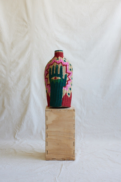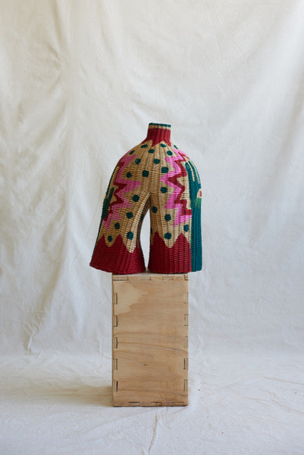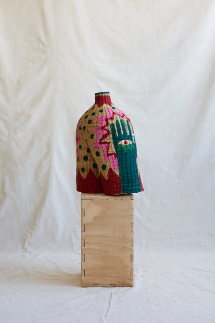Esta pieza mágica fue diseñada por Lørdag & Søndag, tejida a mano por Don Claudio en Oaxaca e intervenida por el artista Brasileño João Incerti.João está basado en Rio de Janeiro y su arte es una celebración del zeitgeist Brasileño.“Alegre, tropical y colorido” son algunas palabras que describen el arte de João.