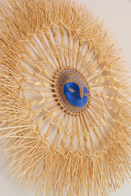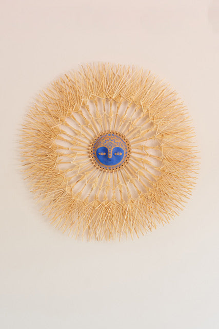 Firstly, the clay sun is handcrafted by Socrates from Perro y Arena in Tijuana. Once this clay piece is completed, Joel Cornelio intervenes by hand-weaving the suns in Michoacán, using popotillo fibers. Due to their flexibility, these fibers are an excellent raw material for basket weaving.