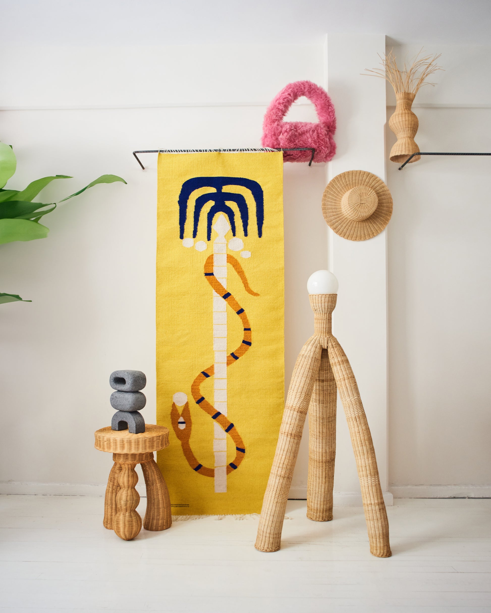 These wool rugs were designed by Lørdag & Søndag and woven on a pedal loom by master artisan Pedro Diego Montaño Santiago in the Zapotec village of Teotitlán del Valle, Oaxaca, Mexico.