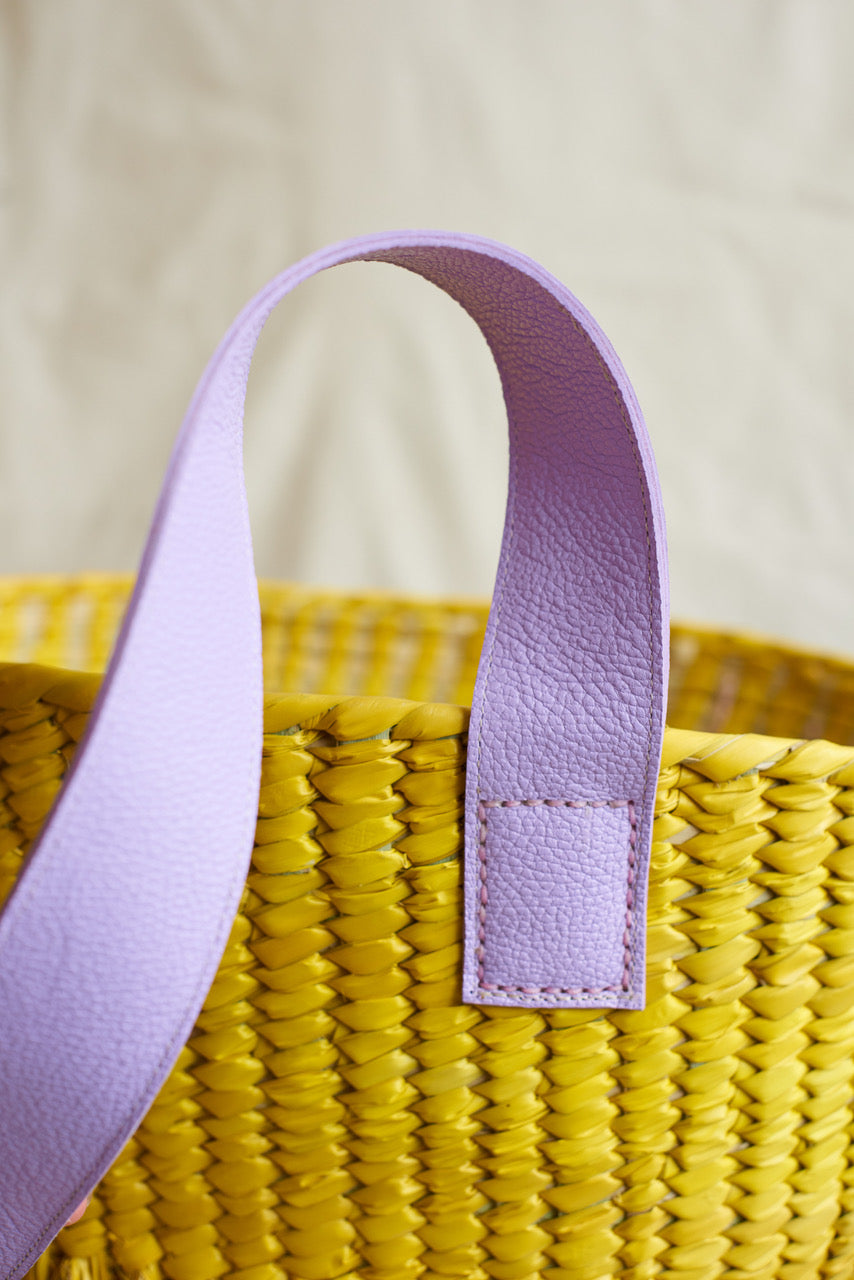 Bolso de Playa/ Picnic tejido a mano utilizando fibra de palma y piel.Esta pieza es hecha por Don Simeón y su familia en el Estado de Guerrero, México.Largo - 60 cmAlto - 36cm