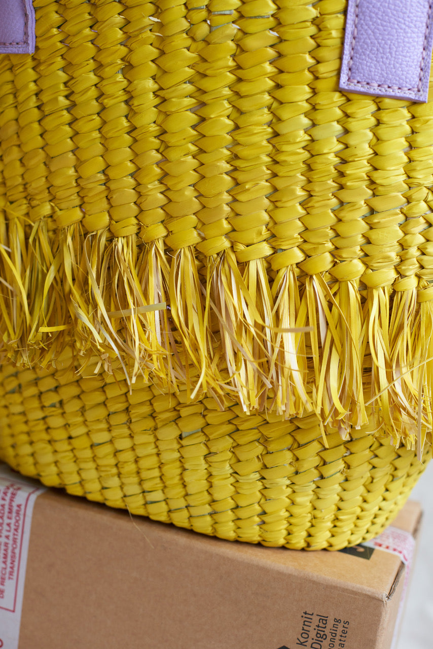 Hand-woven large beach/ picnic bag made using palm fiber and leather.